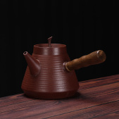 【裸瓷】紫砂富贵侧把壶(盖子悬浮款)